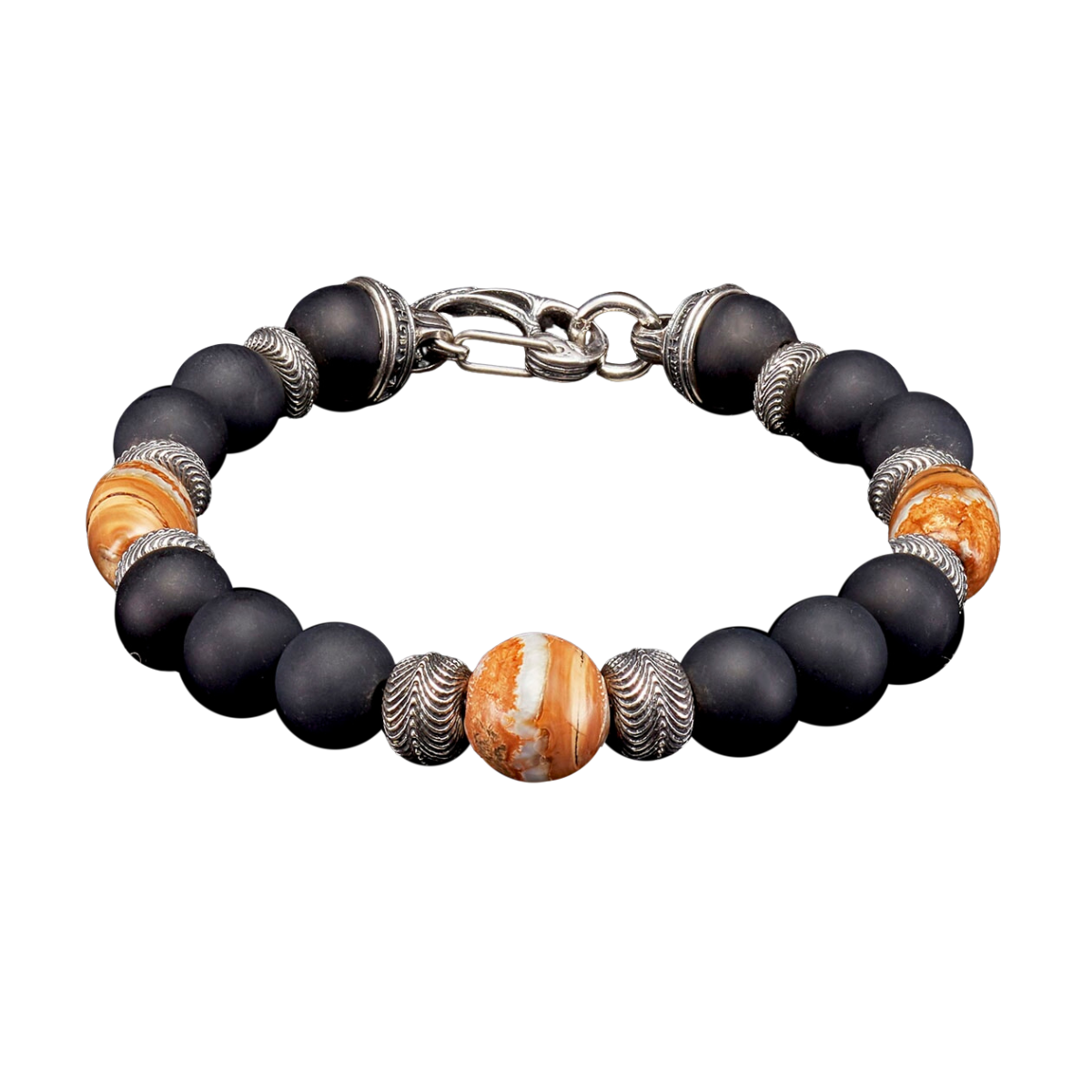 Beaded Bracelet with Sterling Silver, Fossil Mammoth Tooth and Black Onyx